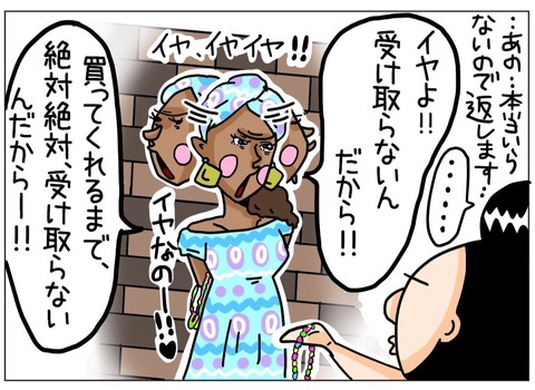 男性の物売りは、『Non merci (結構です。)』で割とすんなり引き下がるのに対し、女性は全然めげない。笑)